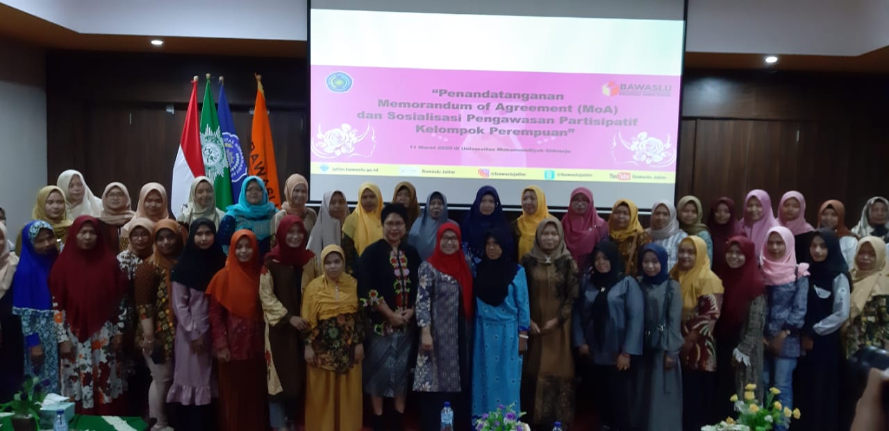 Mojokertokota.bawaslu.go.id – Bawaslu Provinsi Jawa Timur melakukan launching Buku dengan judul “Perempuan Yang” bersamaan dengan kegiatan penandatanganan Memorandum of Agreement (MoA) dan Sosialisasi Pengawasan Partisipatif Kelompok Perempuan, bertempat di Universitas Muhammadiyah Sidoarjo, Rabu (11/03/2020).