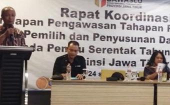 Humas Bawaslu Kota Mojokerto - Melakukan pencegahan terhadap pelanggaran pada pelaksaan pemilu merupakan tugas Bawaslu, berkaitan dengan hal itu, Kamis, (24/11) Bawaslu Se-Provinsi Jawa Timur melakukan koordinasi untuk mengidentifikasi dan memetakan potensi kerawanan pada tahapan