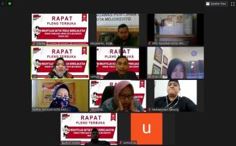 Sesuaikan salah satu Protokol Covid 19, hari ini Rabu, 02/09/2020, KPU Kota Mojokerto laksanakan rapat pleno terbuka dengan tidak tatap muka, menggunakan sarana dalam jaringan via Aplikasi ZOOM.