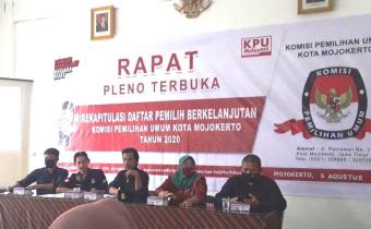 Kota Mojokerto - Mojokertokota.bawaslu.go.id – Bawaslu Kota Mojokerto menghadiri rapat pleno terbuka pemutakhiran data pemilih berkelanjutan (DPB) tahun 2020 bertempat di kantor KPU Kota Mojokerto, Rabu (05/08).